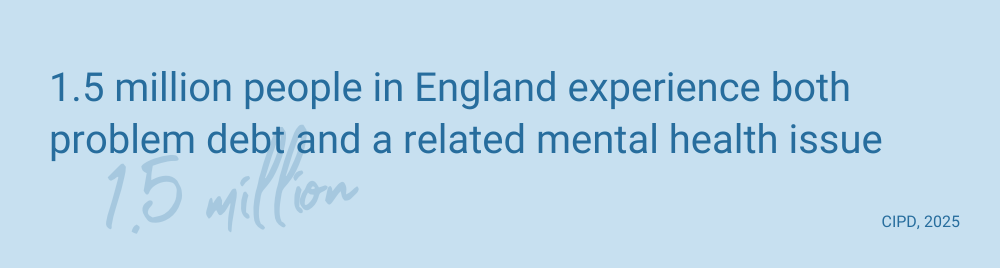 Evidence indicates that financial worries are closely linked to rapidly rising household bills, increased reliance on foodbanks and continued inflationary pressure, with around 1.5 million people in England experiencing both problem debt and a related mental health issue [3].